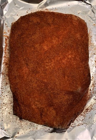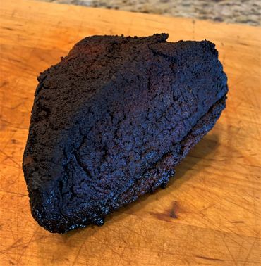 Start the charcoal about 12 hours before meal time and finish prepping your brisket. Pat dry to get the Worst sauce off and to get rid of anything that leaked out of the brisket overnight. Sprinkle on your rub, apply heavily but do not rub into the meat (common mistake, rubbing it in makes smoke entry more difficult). Be sure to remove any chunks of sugar or salt so that the appearance is smooth and even and there are no bites that are too salty or sweet. Remember that each judge only gets one slice. One key is to dry your brown sugar a bit before mixing your rub and storing it in an airtight container to avoid clumping. Turn the brisket over and apply rub to the meat side, do not forget to add rub to the ends and sides as well. Put rub on the burnt end chunks once the brisket is in the smoker.